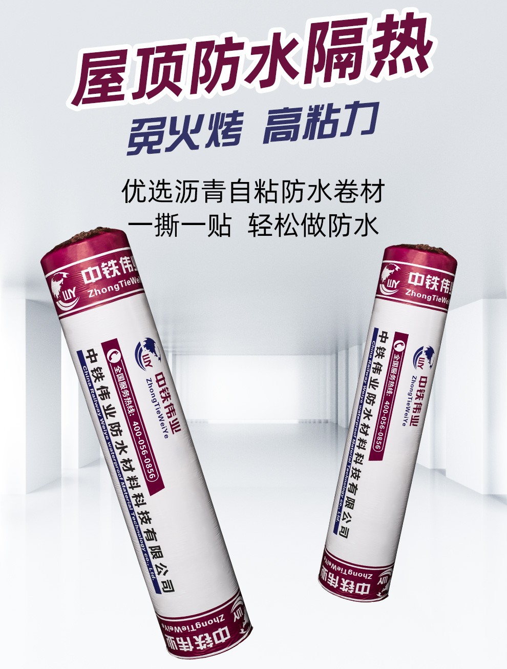 中铁伟业(WY)自粘防水卷材平房屋顶防水防漏材料隔热防漏防水贴楼顶防水胶带防水补漏贴屋顶防水补漏材料 1.5mm厚*1m宽*10m长加厚金属铝卷材