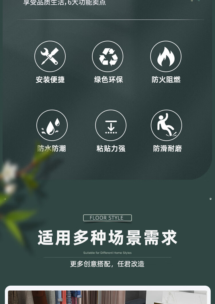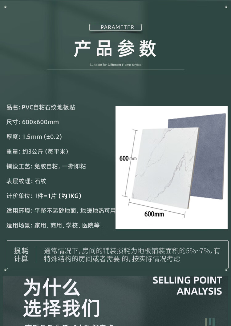 柏宜斯PVC自粘地板胶地板革地板贴加厚耐磨办公室厨房卧室水泥地防水 6153(60x60cm-1.2mm) 一片的价格
