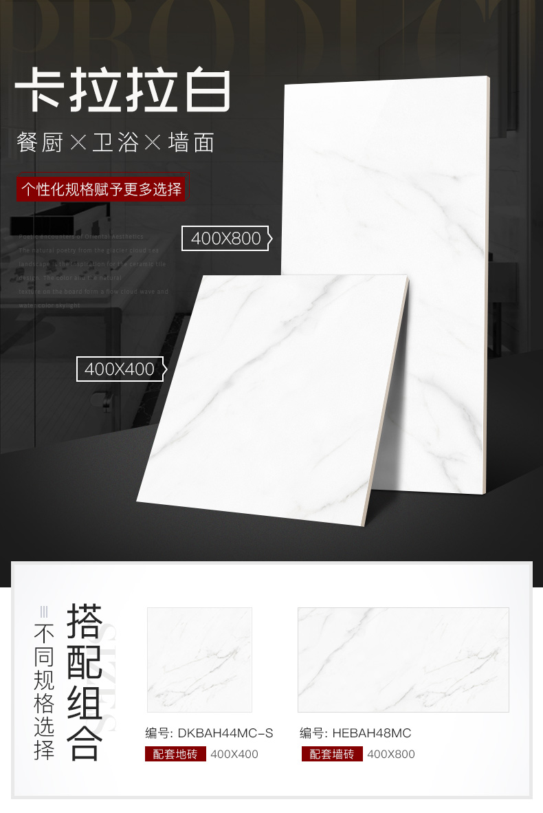 马可波罗 厨房卫生间墙砖 400*800 卡拉拉白(单片价格,按整箱购买)