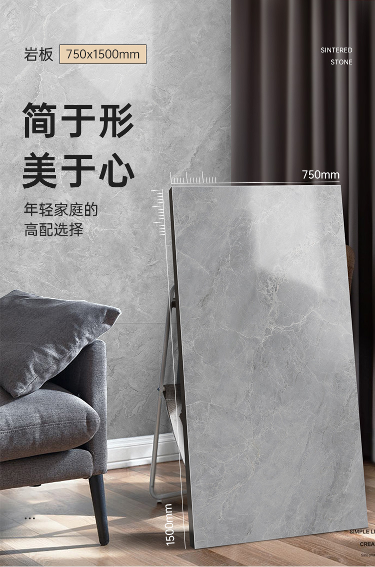 东鹏(DONGPENG) 715灰色系750x1500瓷砖客厅岩板磁砖地板砖现代简约电视背景墙砖