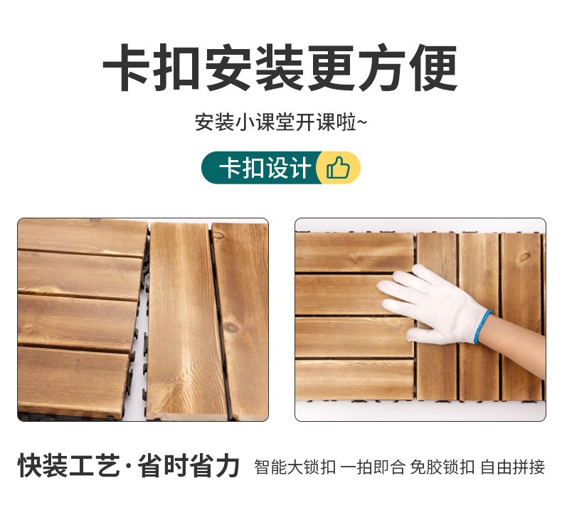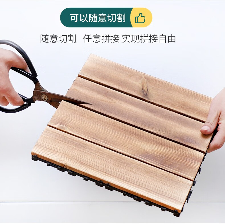 小林开垦实木地板户外阳台露台地板室外花园浴室自铺拼接防水碳化防腐 耐用款 30*30cm 一片